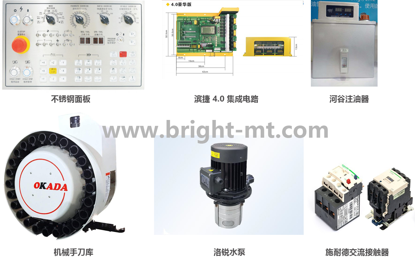 高速立式加工中心 主要配置: 日本 NSK軸承; 臺灣上銀/銀泰線性滑軌; 臺灣上銀/銀泰滾珠絲桿; 臺灣新代/日本發(fā)那科(FANUC)控制系統(tǒng); 臺灣新代/日本發(fā)那科(FANUC)主軸電機(jī)。
