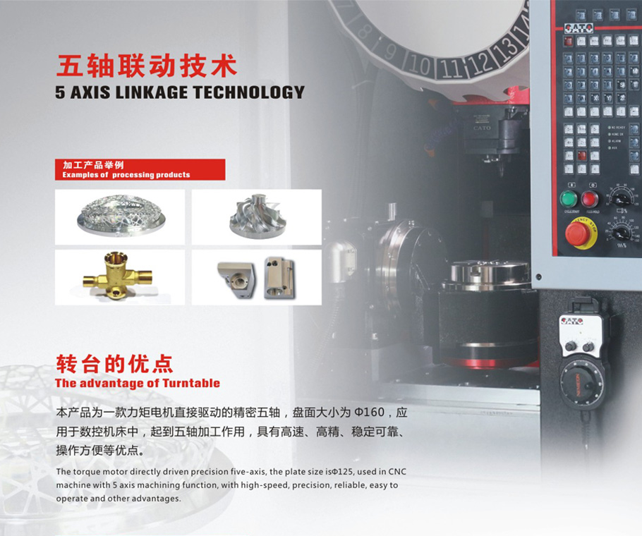 3.效率高。配合主軸可實(shí)現(xiàn)高效五軸加工,低速銑削時(shí)可進(jìn)行精確分度,車削時(shí)可實(shí)現(xiàn)高速大扭矩旋轉(zhuǎn),從而大幅度提升加工效率;并且本轉(zhuǎn)臺(tái)采用自主專利的剎車結(jié)構(gòu),剎車可靠且不影響臺(tái)面精度。