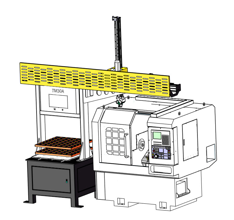 TM30A系列輕型單機(jī)桁架機(jī)械手,適用于小件加工。采用鋁制橫梁和經(jīng)濟(jì)型控制器,易于車床操作者掌握。