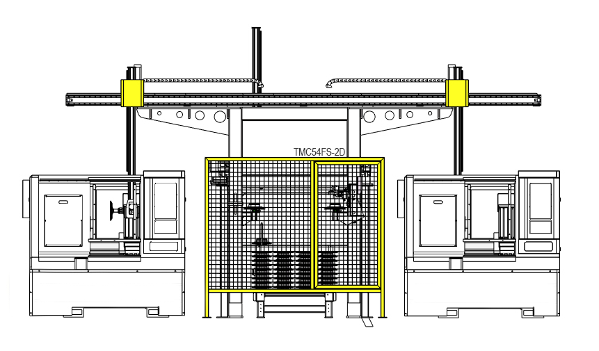 TMC54FS-2D系列一拖二雙Z軸復(fù)合型桁架機(jī)械手采用12軸運(yùn)動(dòng)控制器。即可分序加工雙面,又可分別加工同一工序,實(shí)現(xiàn)自動(dòng)化高效率大批量生產(chǎn)。